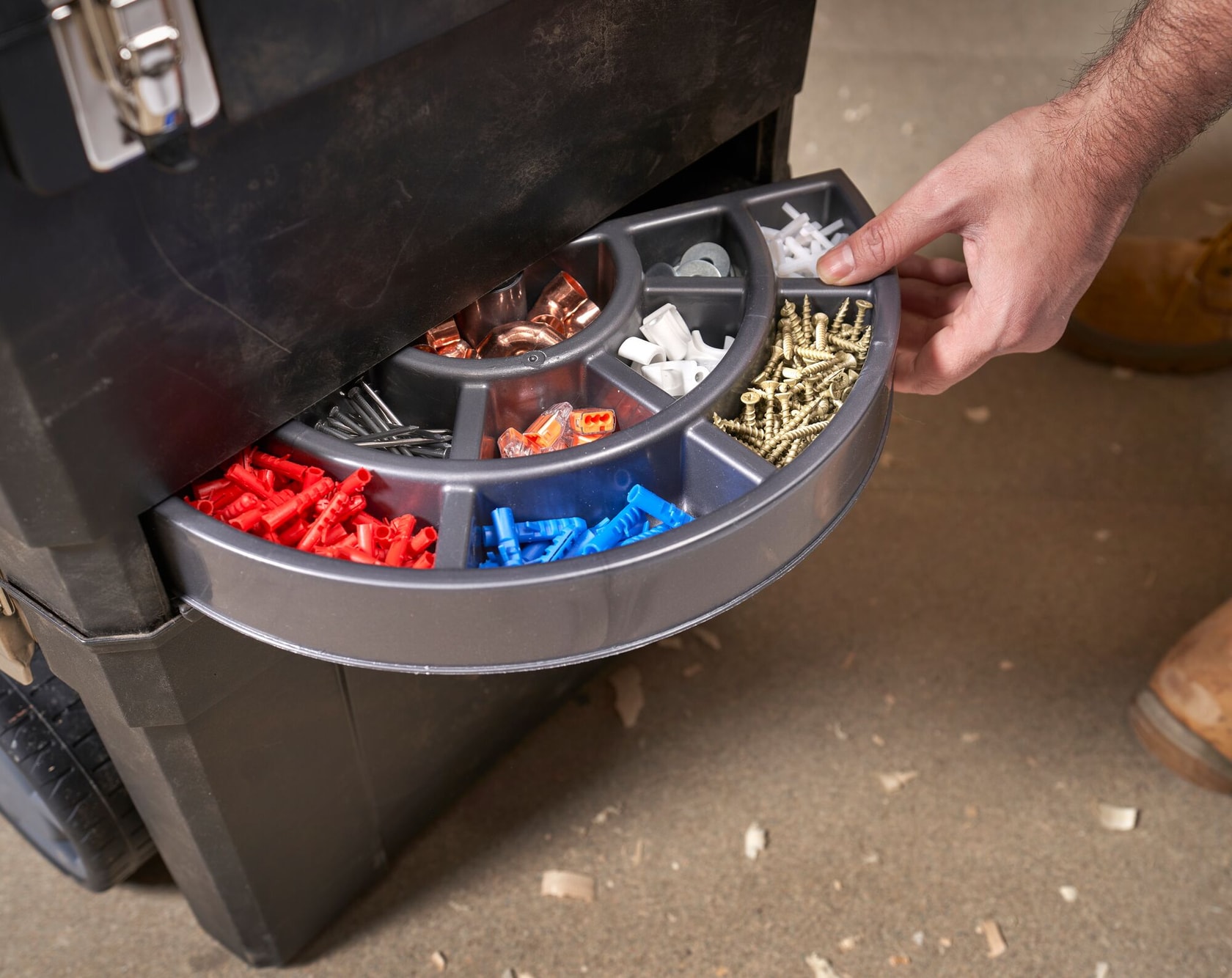 Boîte à outils, plateau amovible