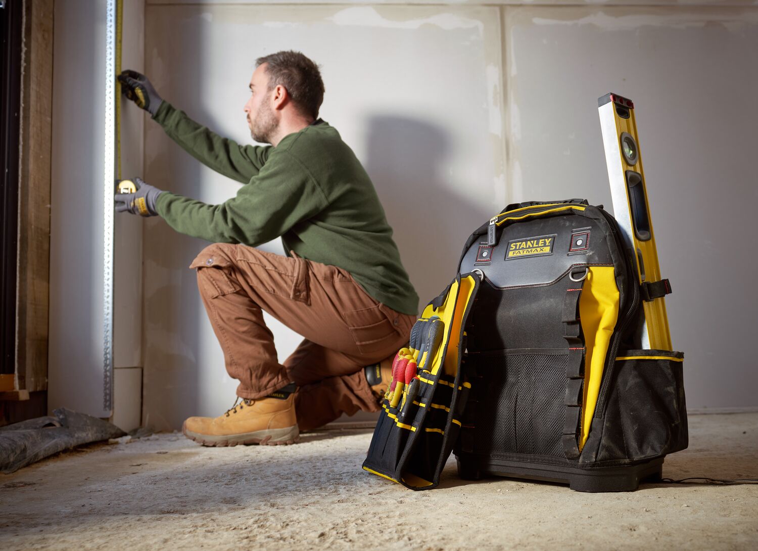 Le sac à dos robuste STANLEY® FATMAX® est doté d'une fermeture éclair à large ouverture pour un accès rapide et pratique aux outils, et comprend une base rigide imperméable pour plus de durabilité.